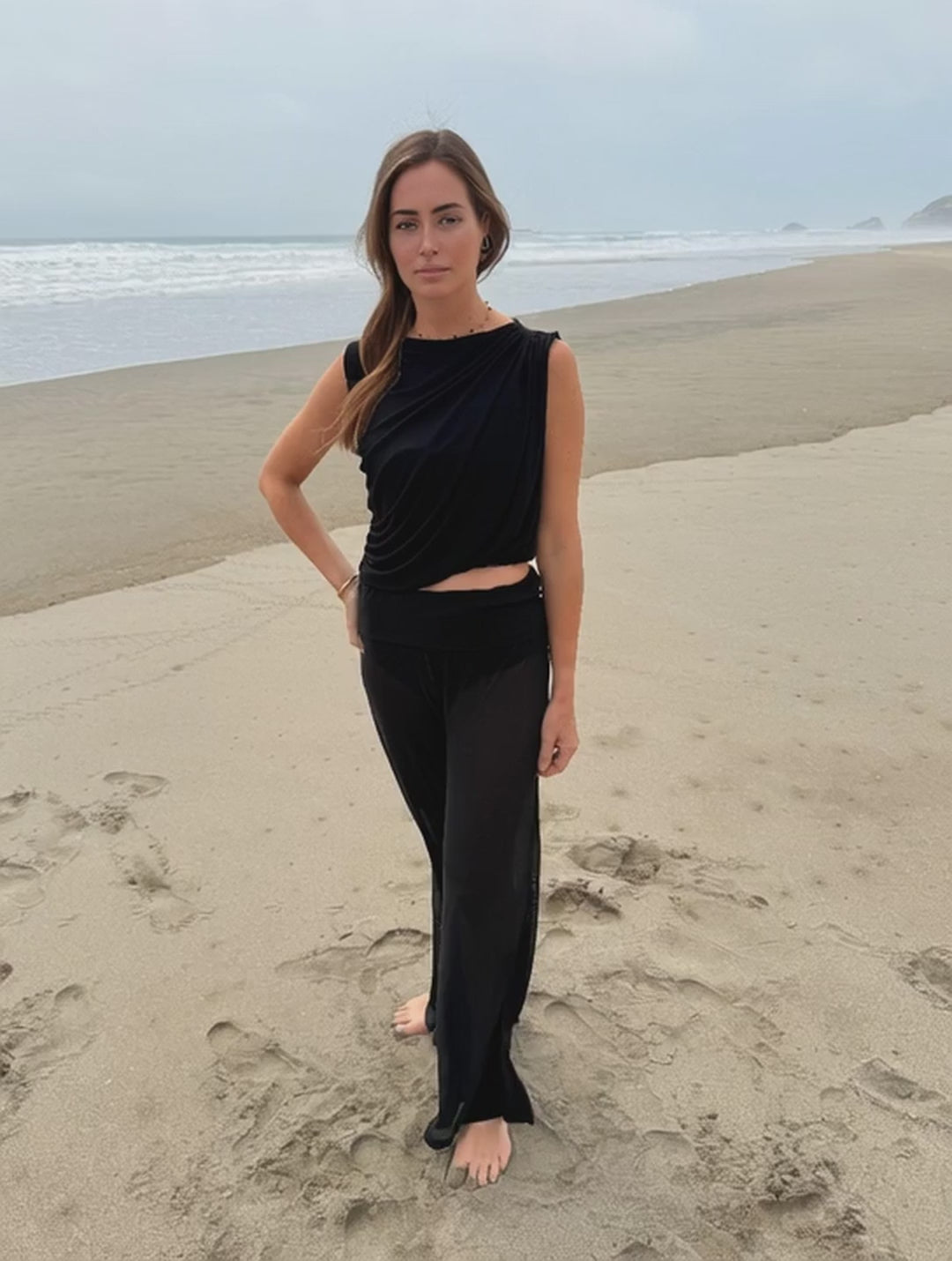 BLACK COVER UP MESH PANT